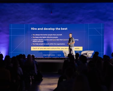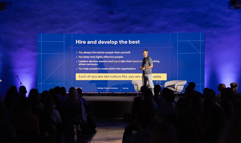 We have facilitated multi‑day offsites for teams at client organizations such as Dropbox and Moloco, including a two‑day session for a large Dropbox product organization focused on high-velocity decision‑making, strengthening risk‑taking norms, and building practical mechanisms to support both. We have also led a two‑day offsite for a client HR leadership team to improve team dynamics and develop their strategic plan for the year ahead. In addition to this facilitation work, we delivered the keynote address for Hostinger’s company‑wide gathering in Lithuania, focused on practical takeaways on how to hire and develop the best. Across these projects, our role has been to create the structure, clarity, and space teams need to do meaningful work together.